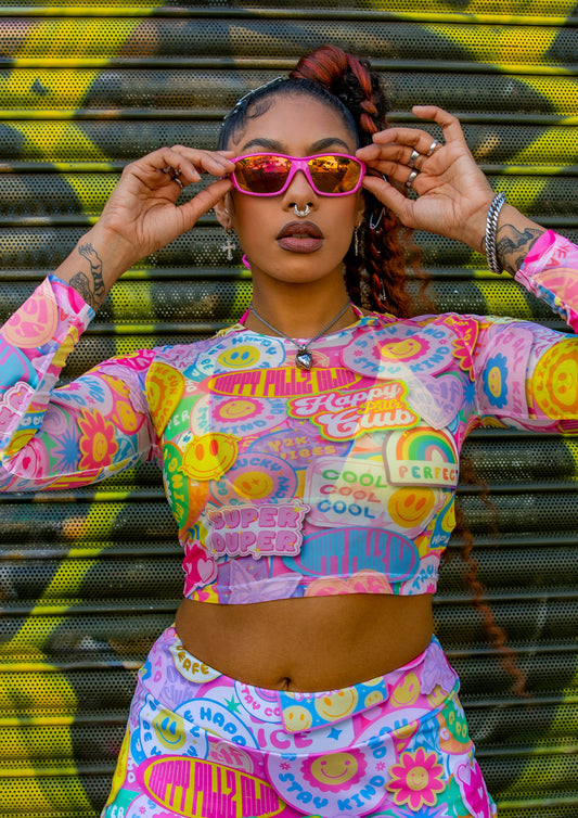 Cosmic Gaze Mesh Long Sleeve Crop Top