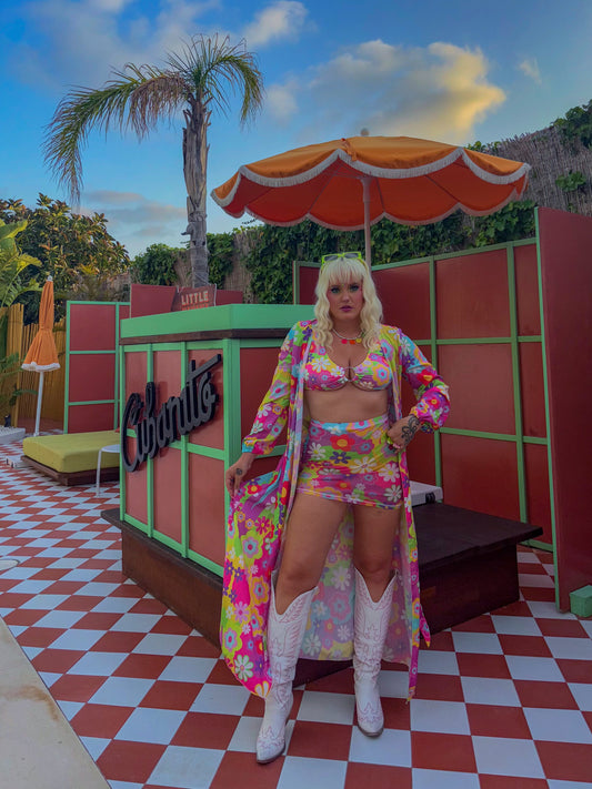 Disco Daisy Mesh Bell Sleeve Cropped Tie Top