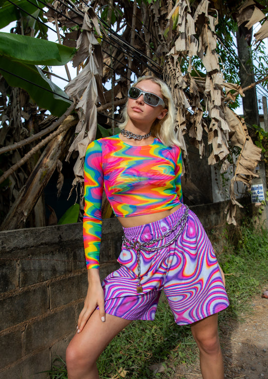 Totally Trippin’ Mesh Long Sleeve Crop Top