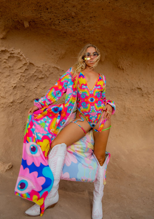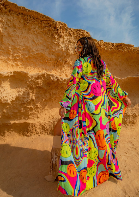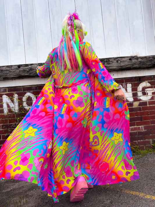 Trippy Drip Maxi Chiffon Kimono Style Jacket