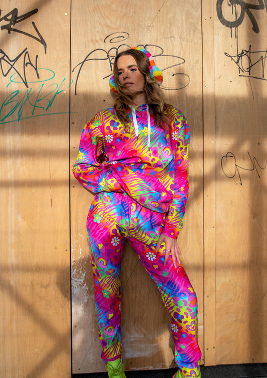 Elevate your look with our unisex tracksuit selection, where street style meets festival vibes! Featuring bold colors and playful patterns, these comfy and stylish tracksuits are perfect for dancing at raves or lounging in style.