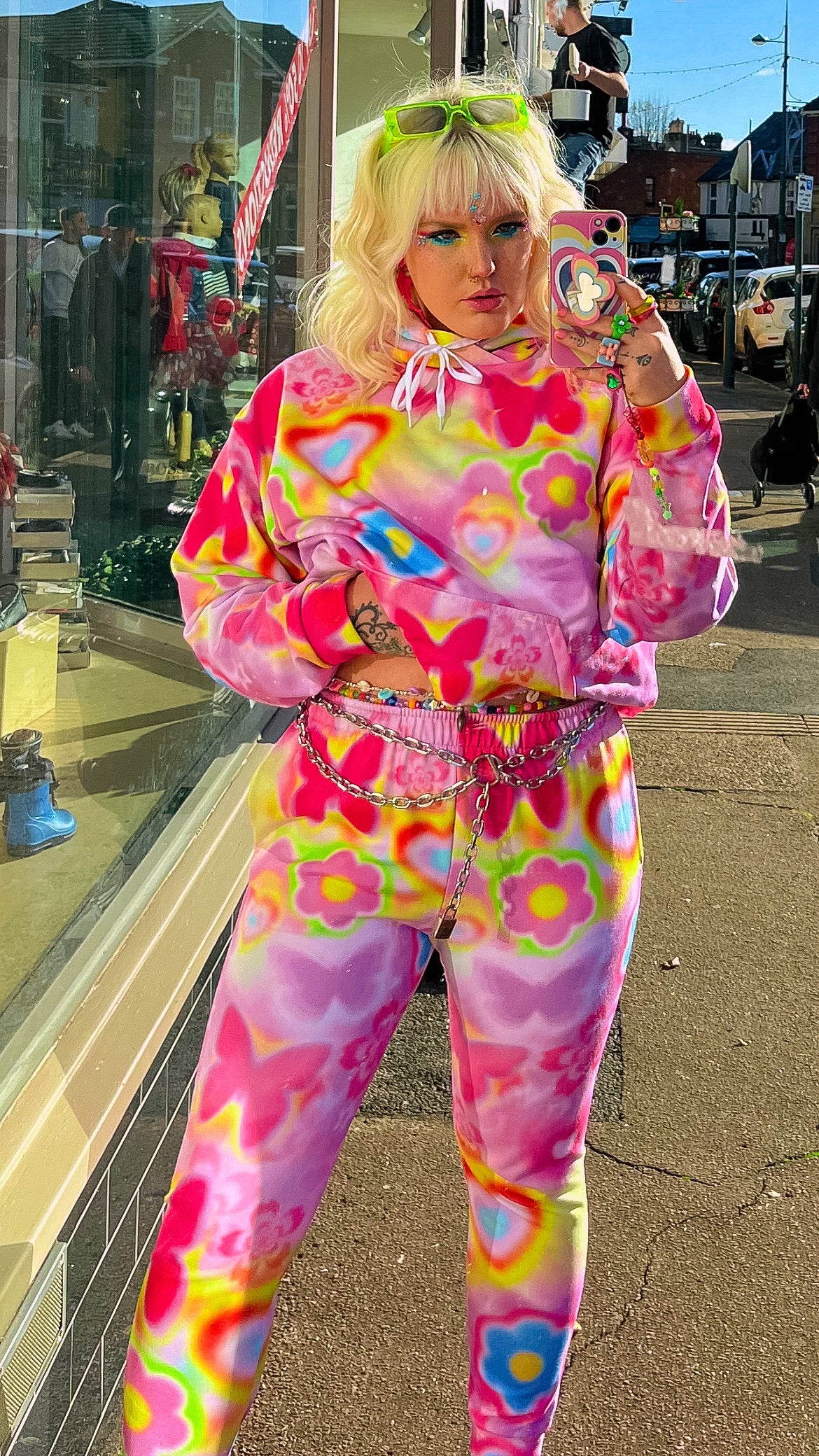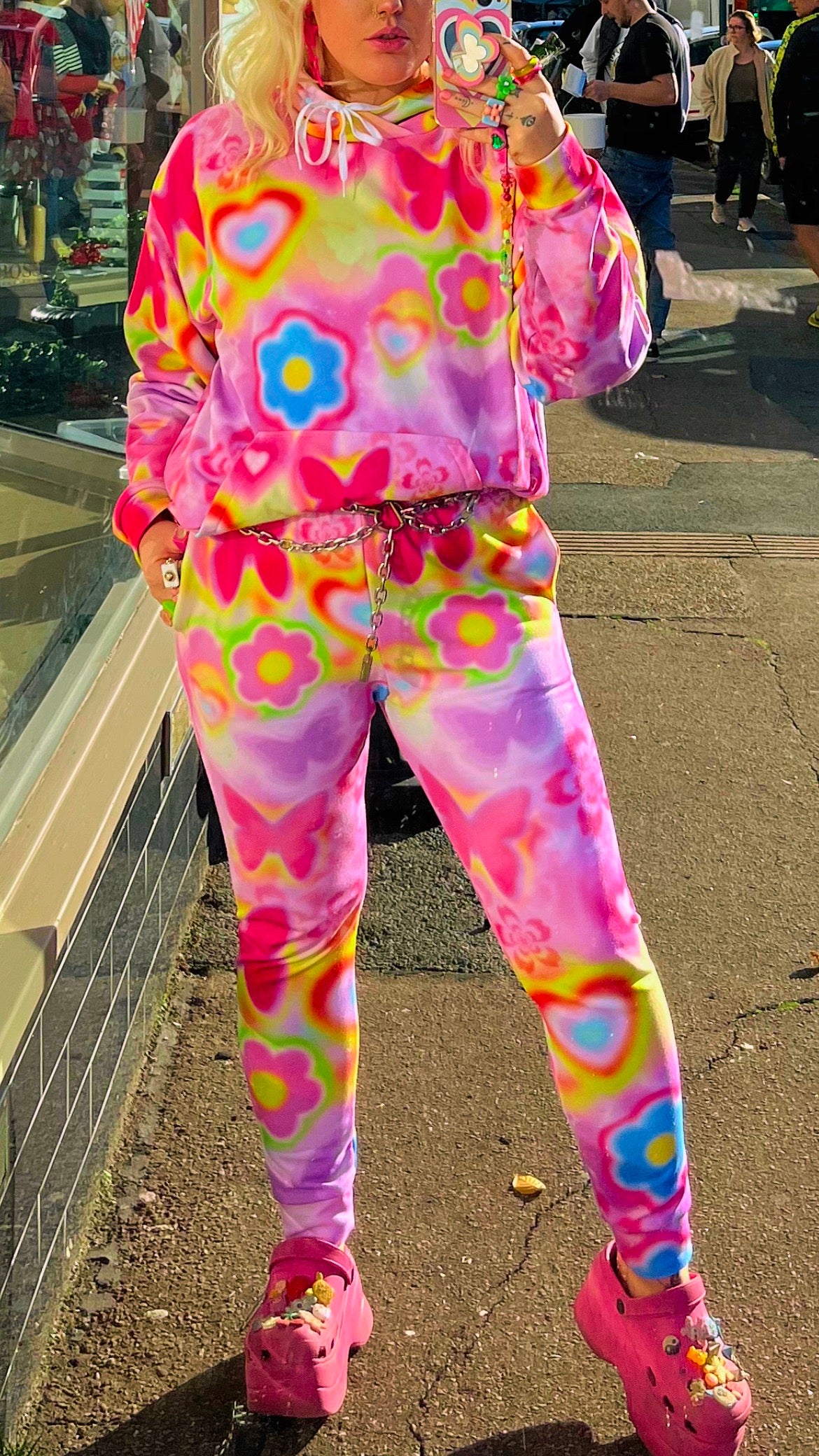 Our tracksuits are made of 95% recycled polyester and 5% spandex they are a premium high quality soft cotton feel fabric with brushed fleece on the inside