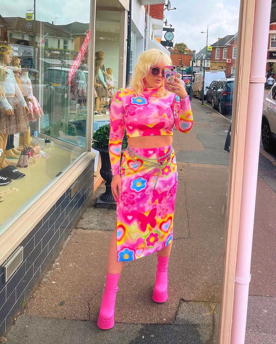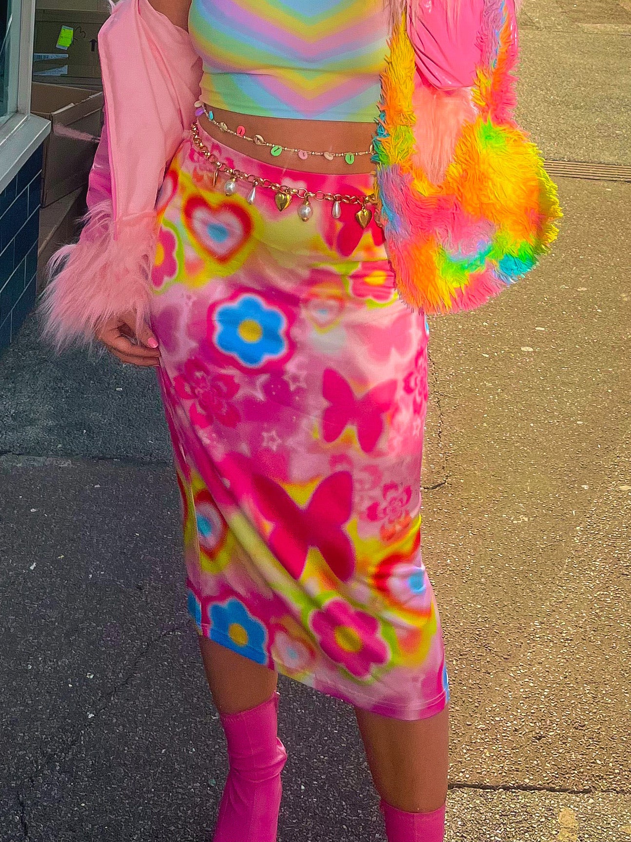 Stand out from the crowd in this beautiful butterfly print pink midi skirt pencil skirt