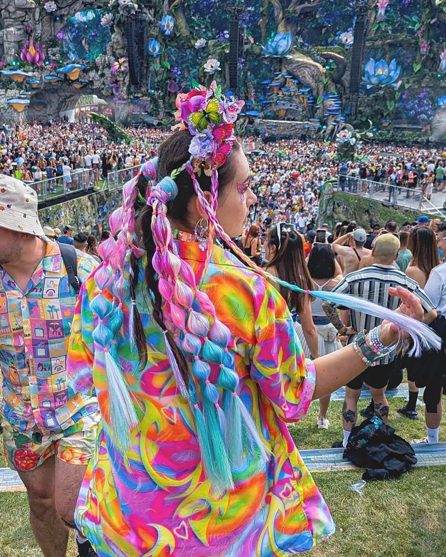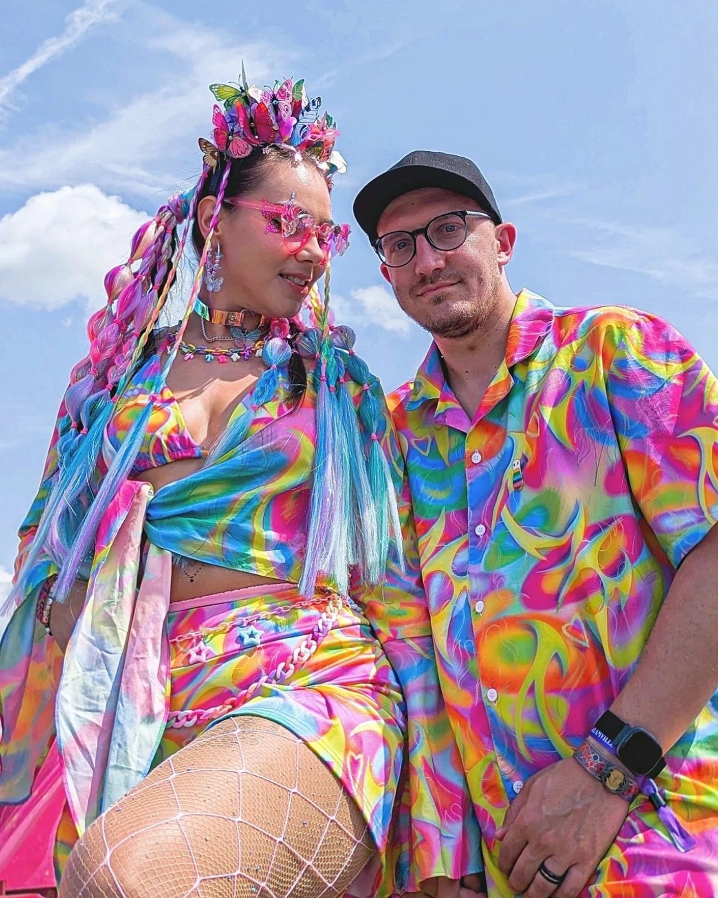 Stand out from the crowd in this y2k rainbow print button up shirt