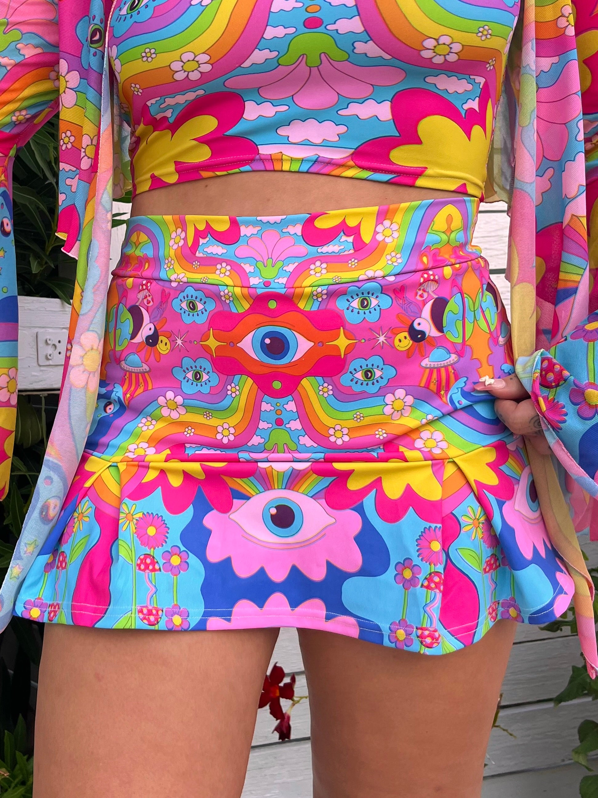 Pleated tennis skirt with inner shorts attached for extra booty coverage when dancing at a rave or festival. Design also includes a hidden stash pocket. These really are the perfect festival skort!