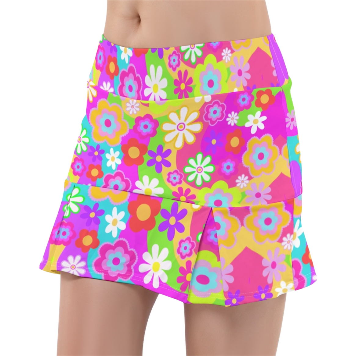 Pleated tennis skirt with inner shorts attached for extra booty coverage when dancing at a rave or festival. Design also includes a hidden stash pocket. These really are the perfect festival skort!