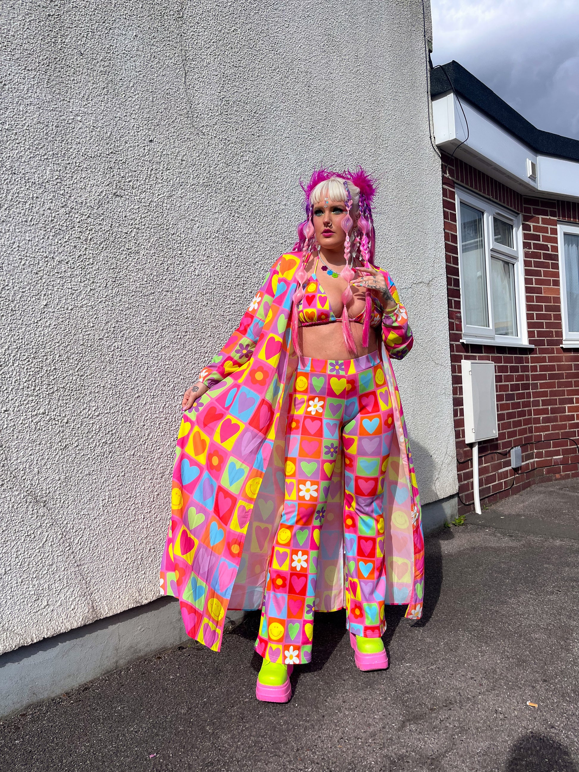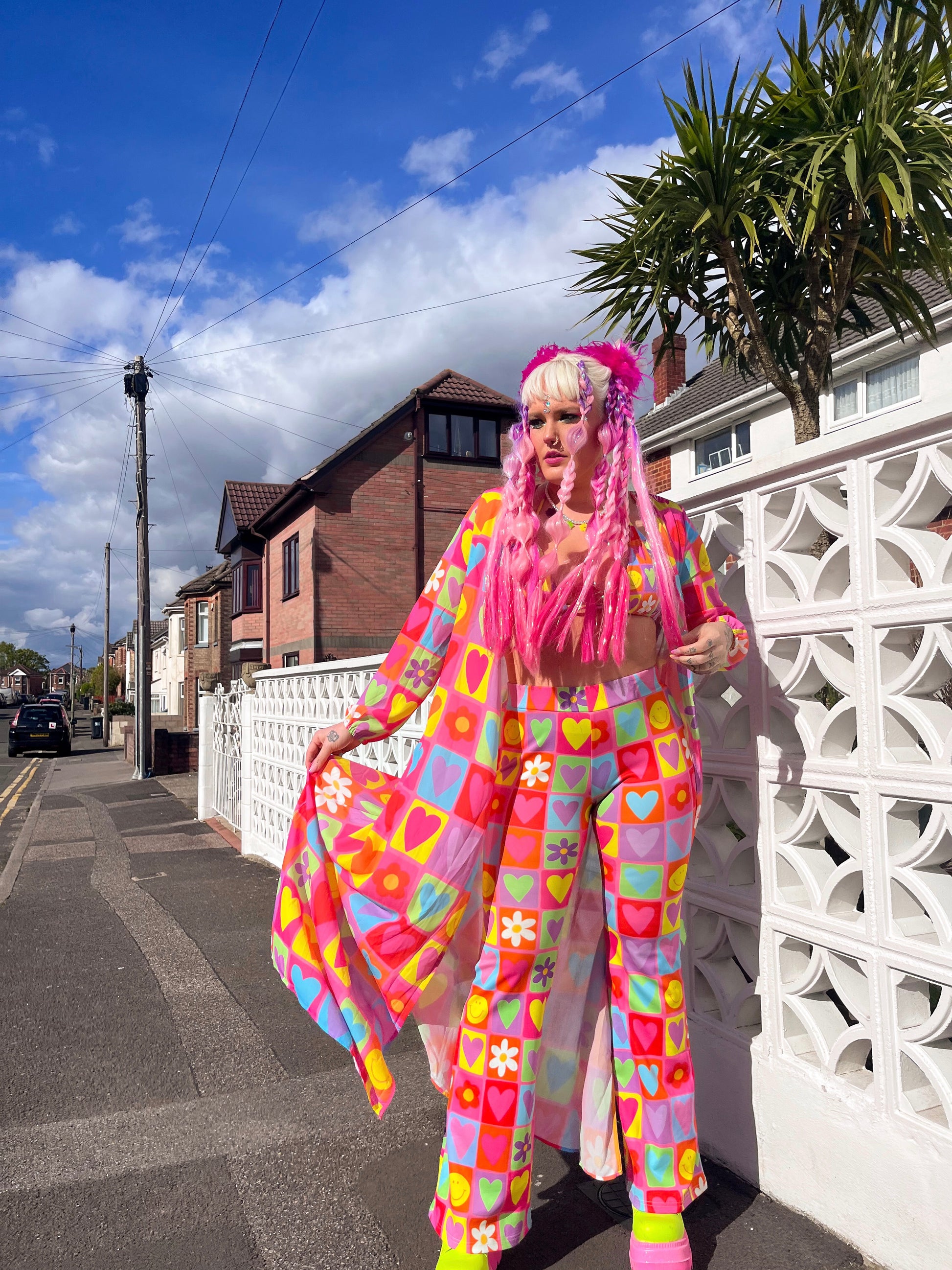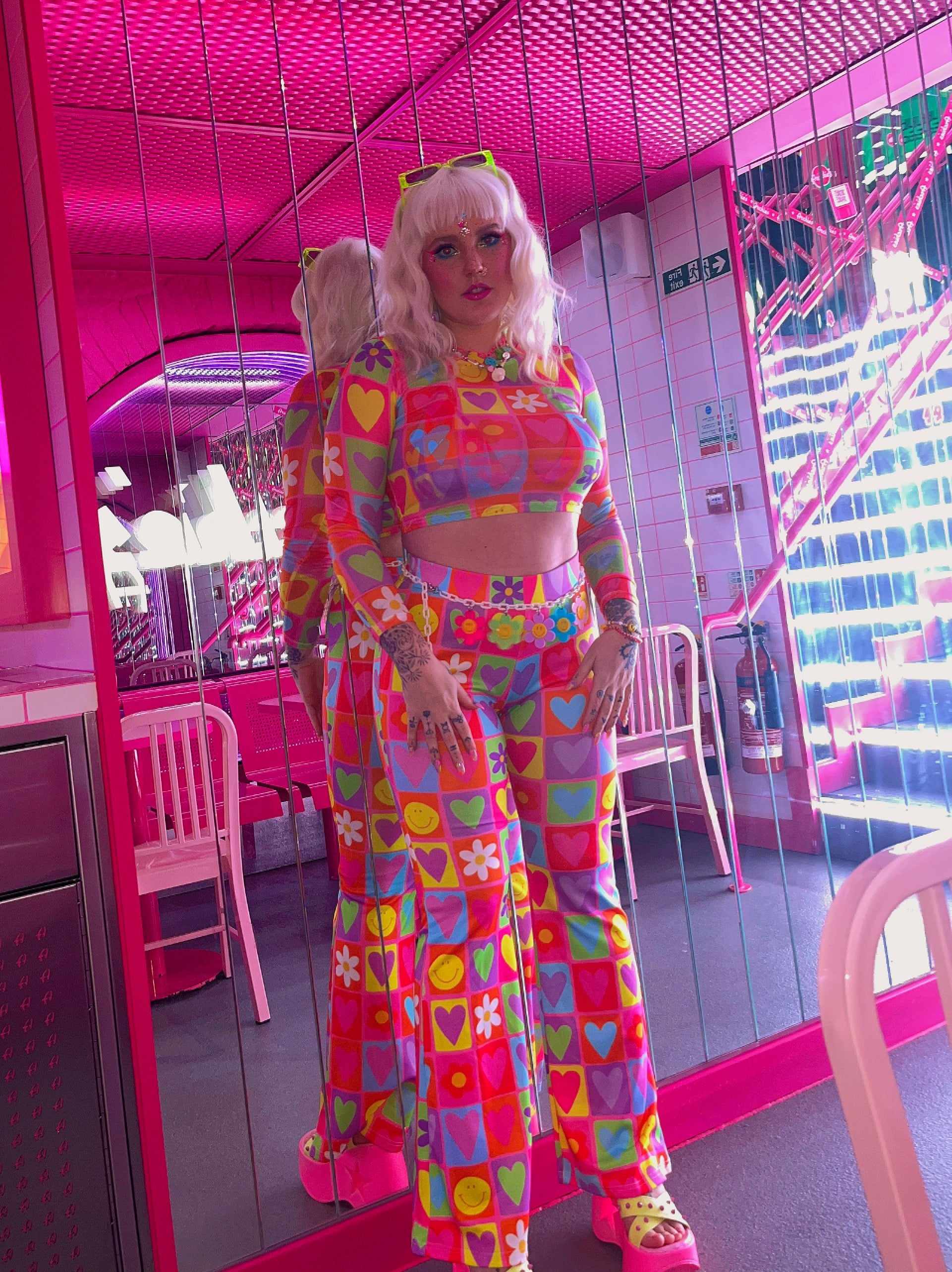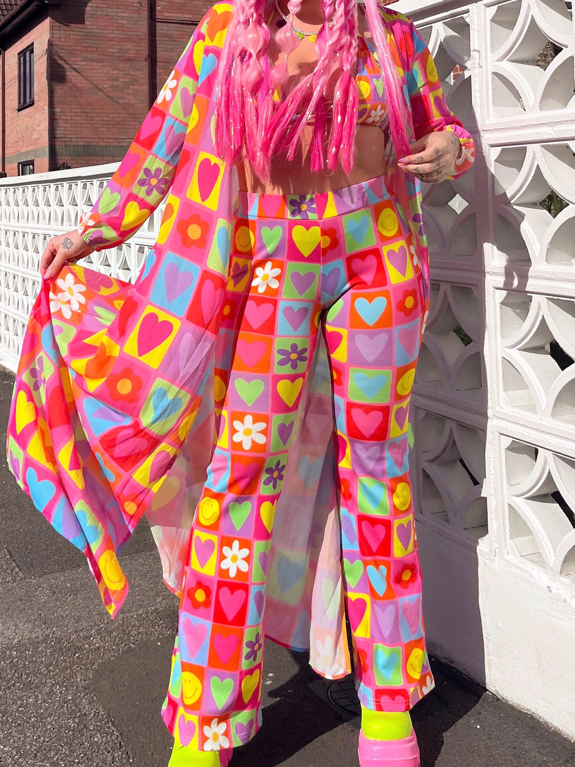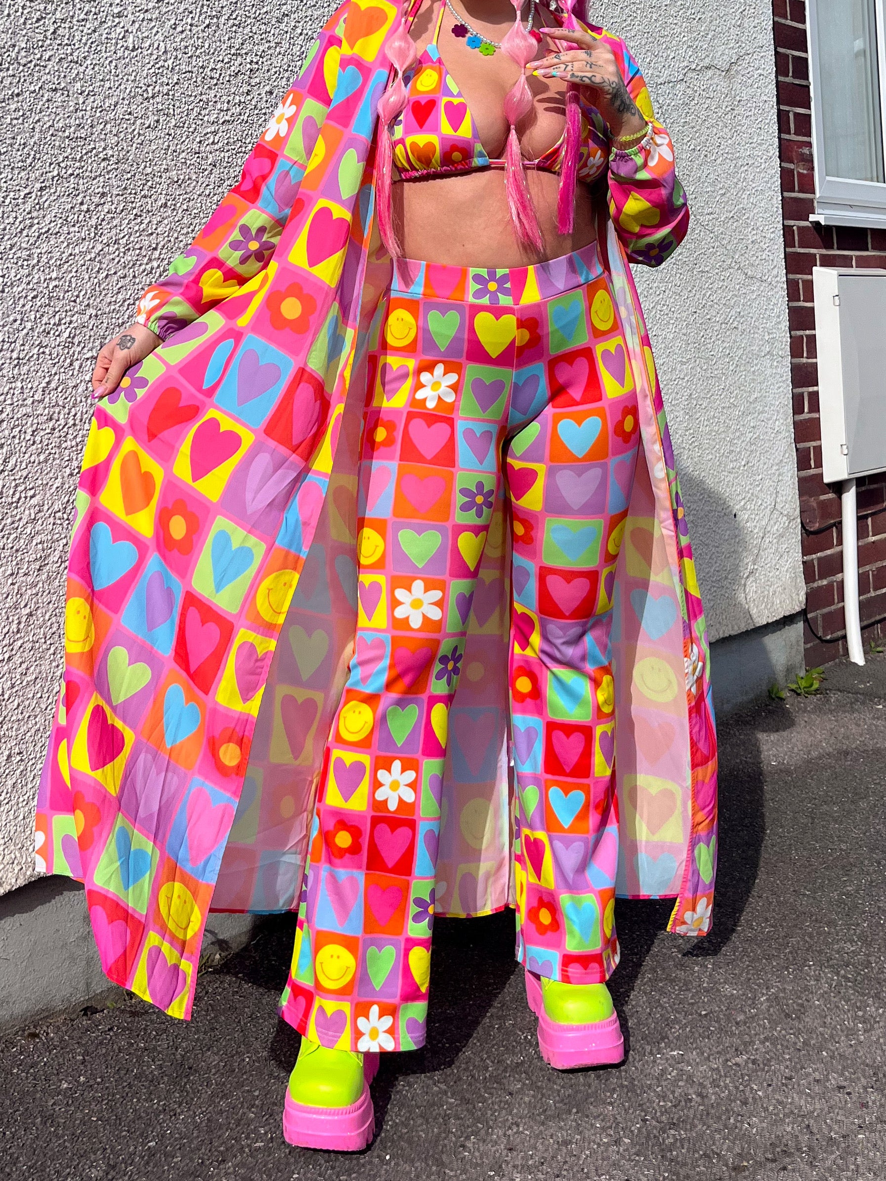 Elevate your wardrobe with these stunning high-waisted bell bottom flares, crafted from premium quality soft touch stretchy spandex. Designed for ultimate comfort and style, these flares feature a bold and vibrant print that’s sure to turn heads. The high-stretch fabric provides a flattering fit and maximum comfort, making them perfect for all-day wear. Whether you're rocking them for everyday errands or showcasing your festival spirit at raves and events, these flares are effortlessly chic and versatile. Step out in style and embrace the perfect blend of comfort and flair with these must-have bell bottoms!
