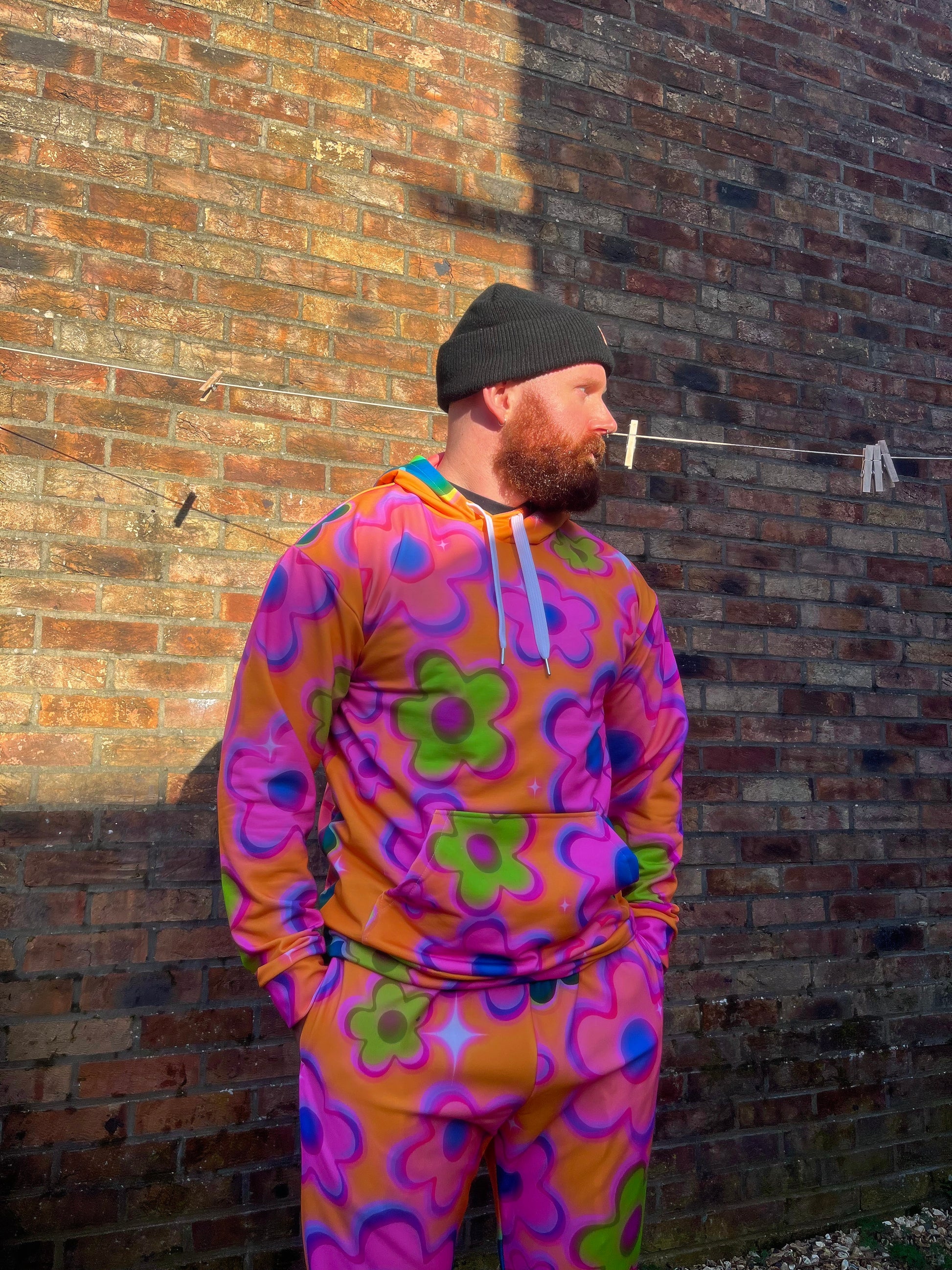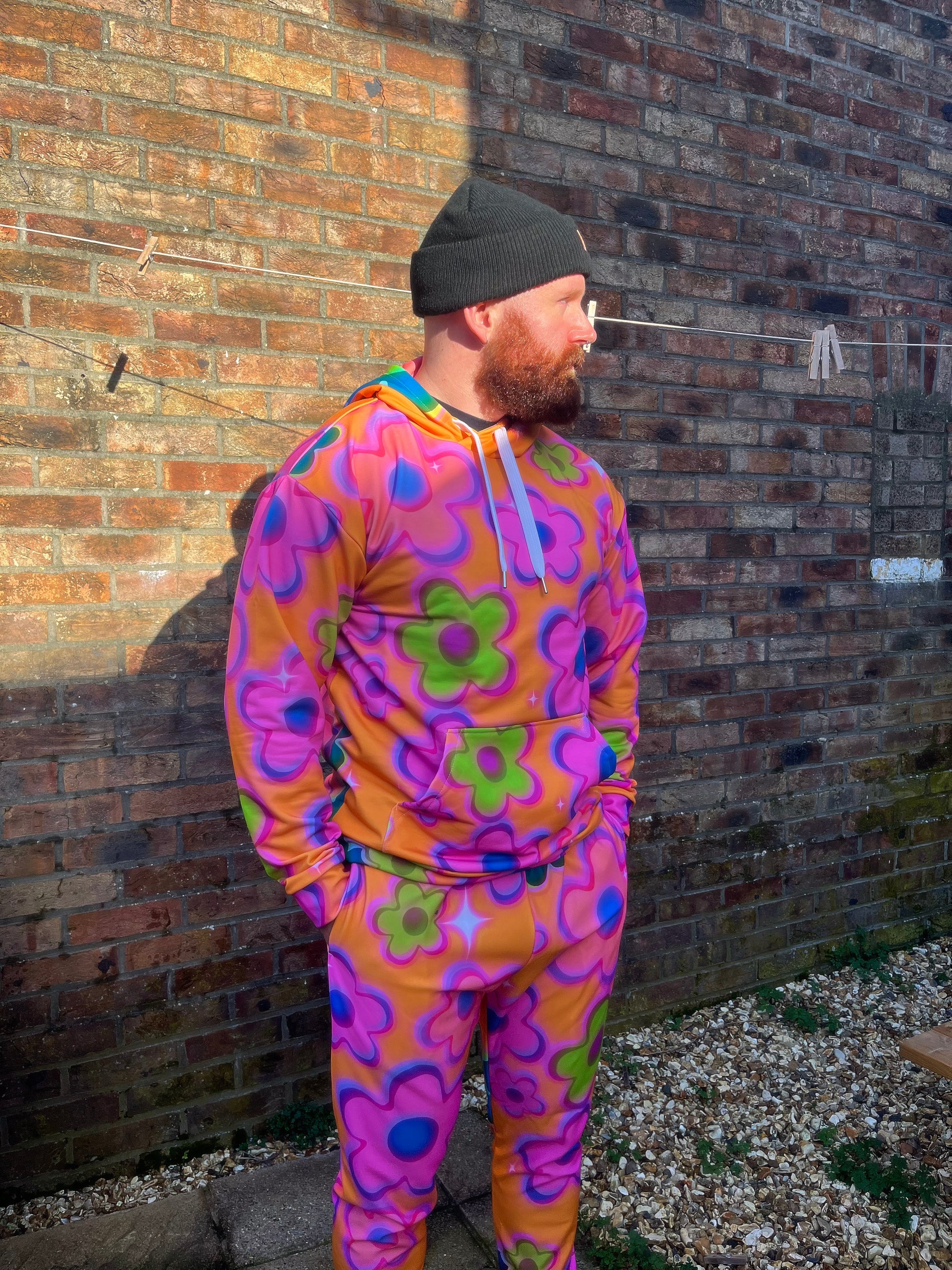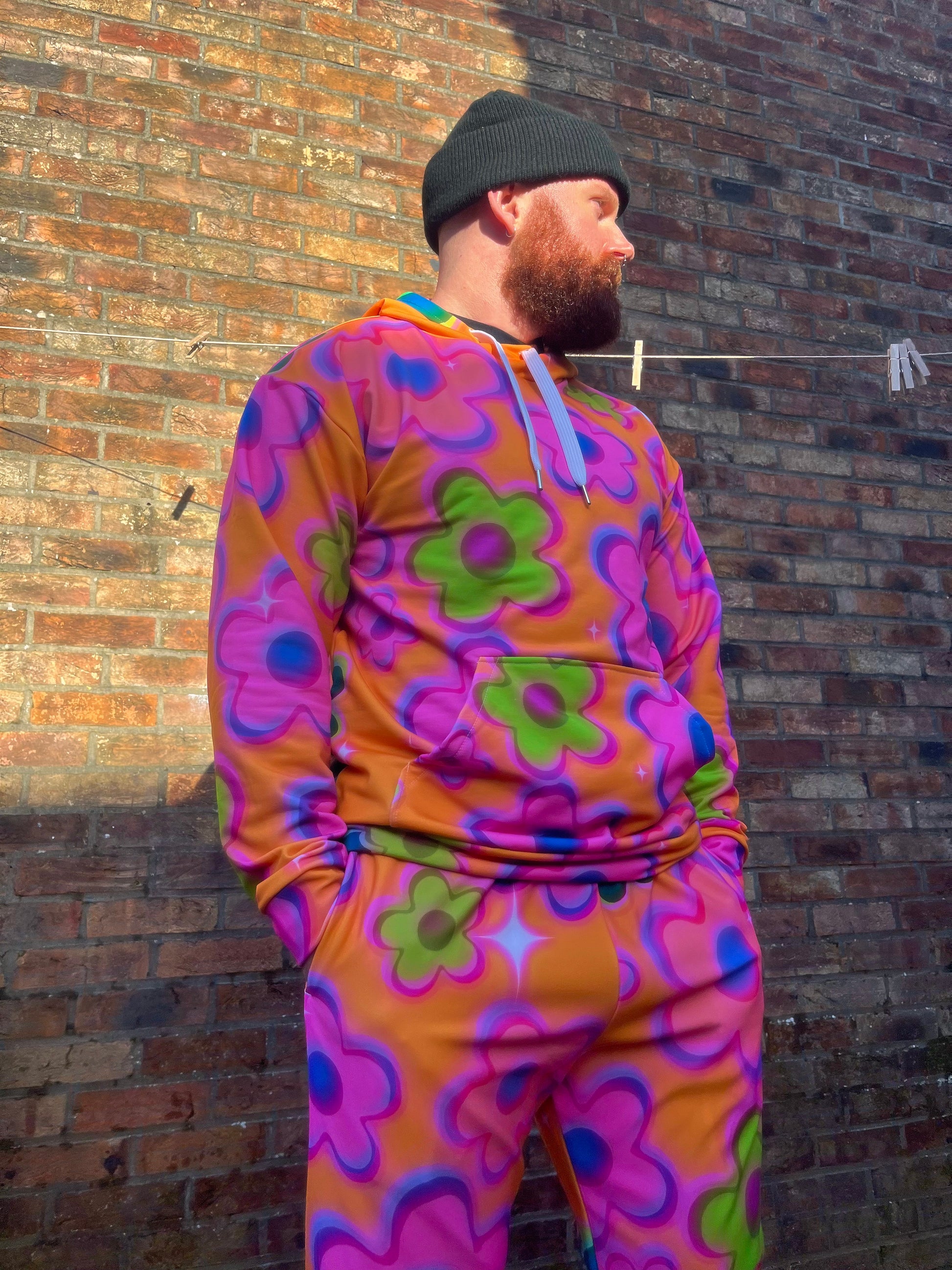 Our tracksuits are made of 95% recycled polyester and 5% spandex they are a premium high quality soft cotton feel fabric with brushed fleece on the inside