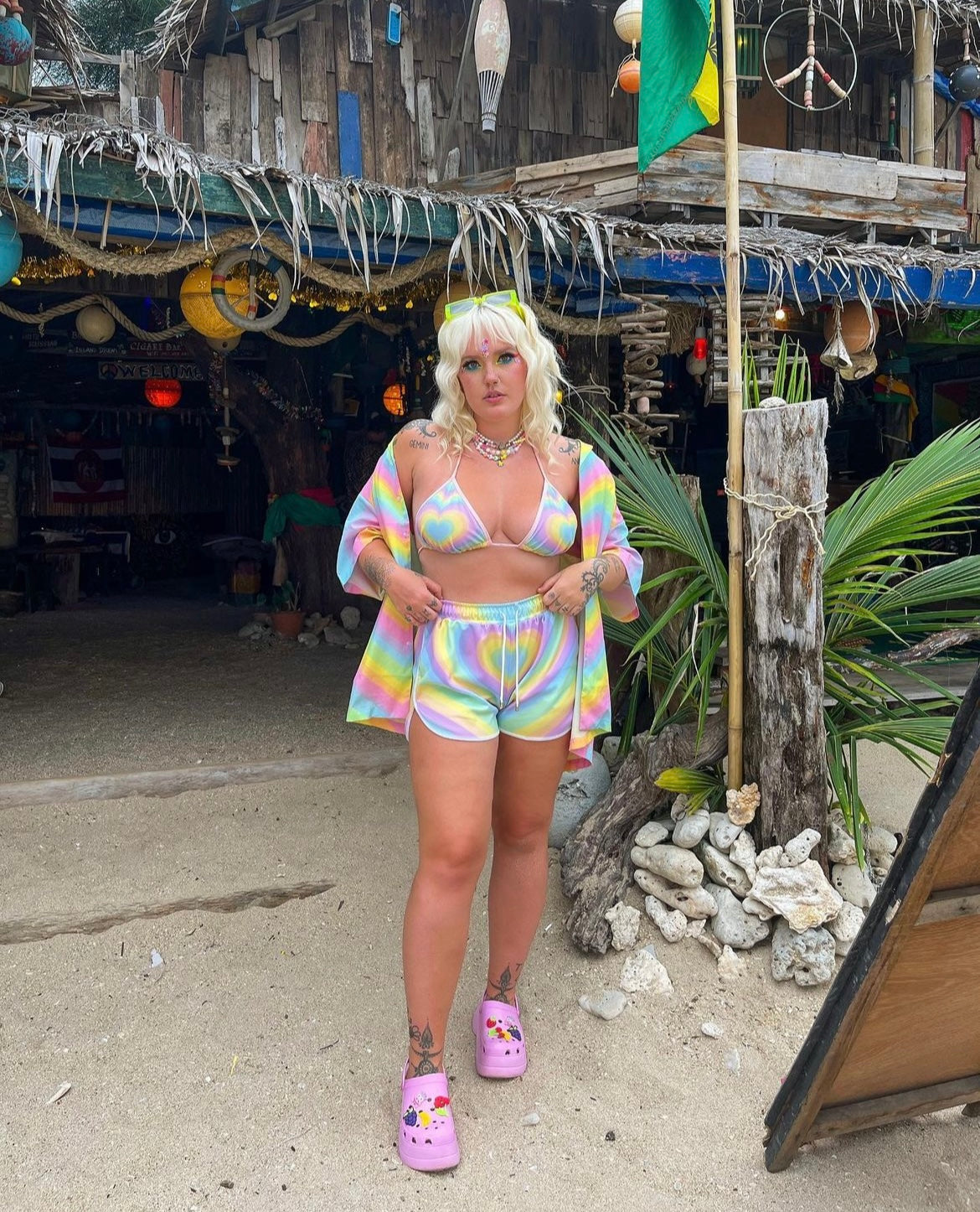 Stay sassy with this fun pastel rainbow love heart print triangle bikini top 💖🌈