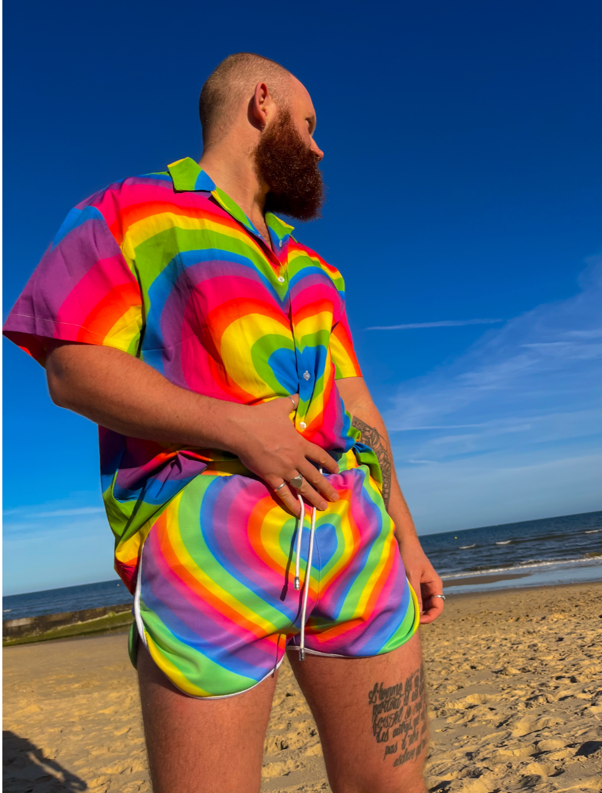 Stay sassy in this fun printed Hawaiian style short sleeve button down shirt. The lightweight, floaty fabric will keep you cool and comfortable. Perfectly paired with our Loved Up Luxe Shorties or layered over our Loved Up Bikini