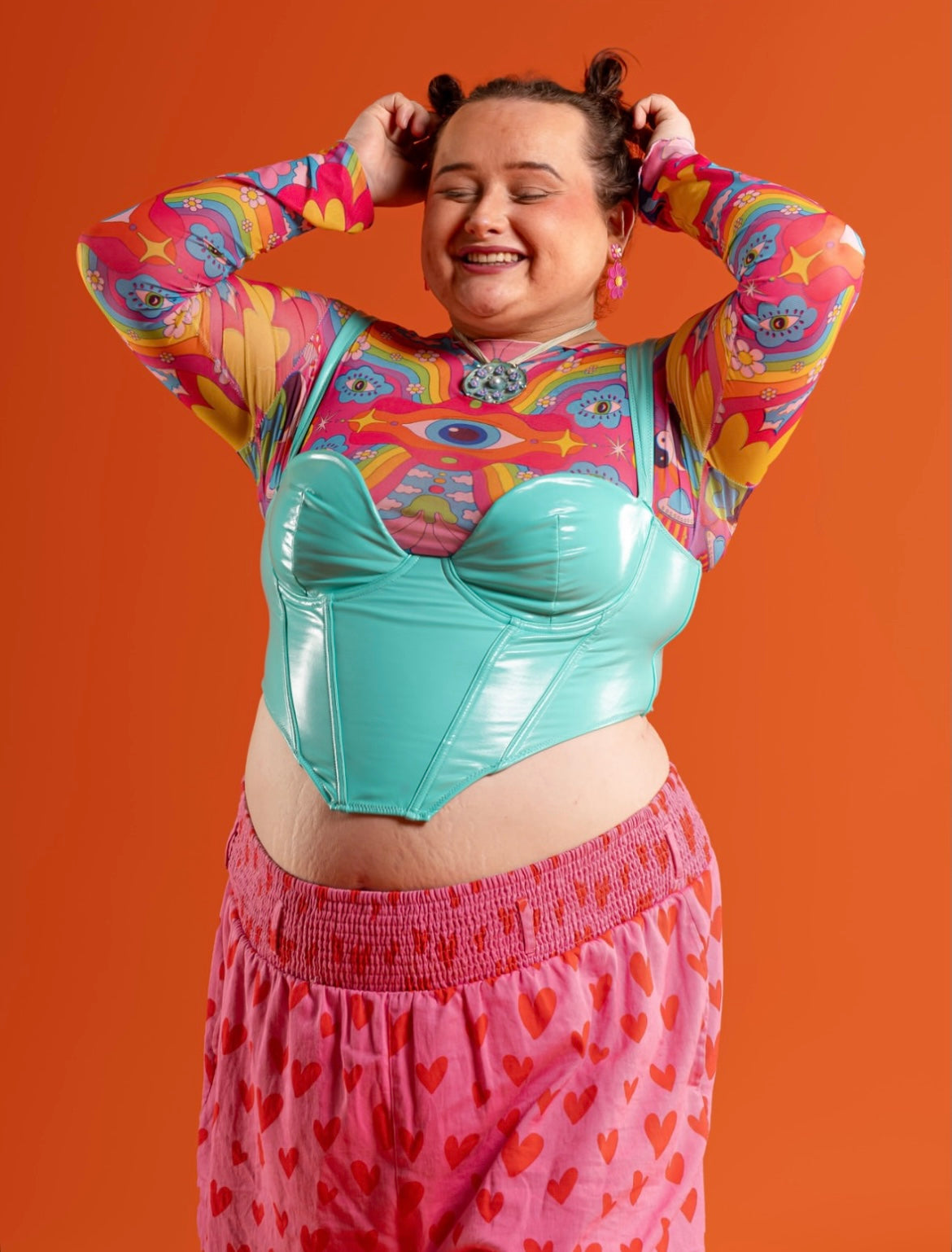 Cosmic Gaze Mesh Long Sleeve Crop Top