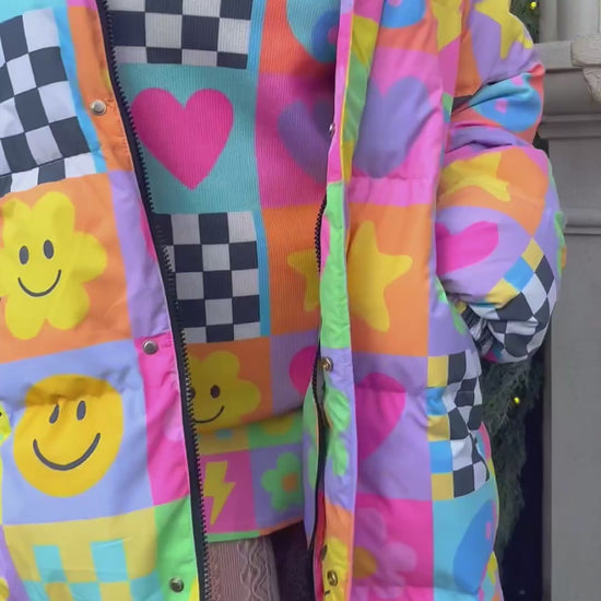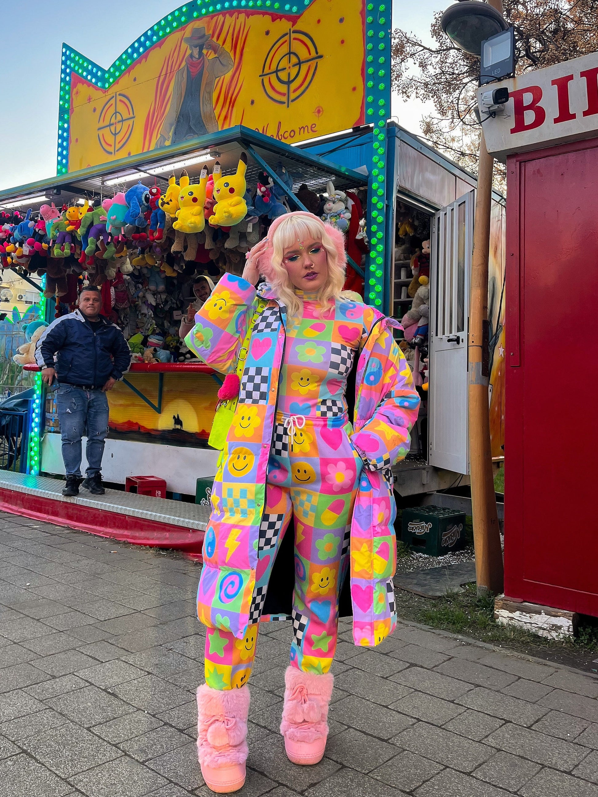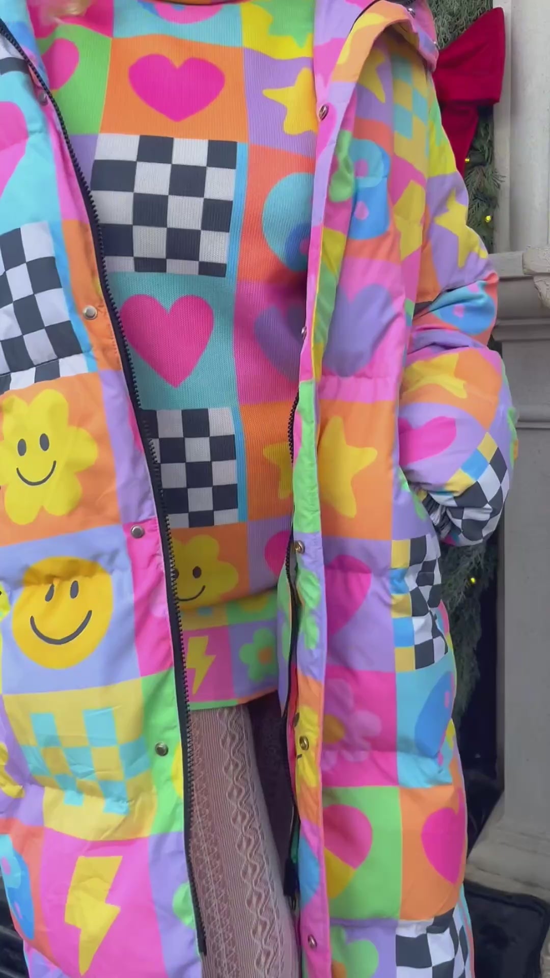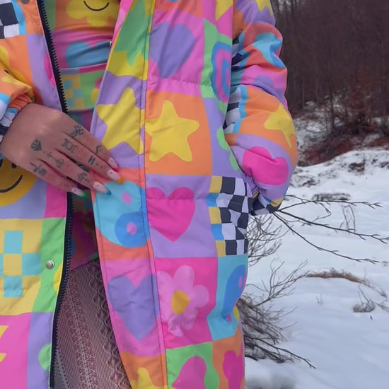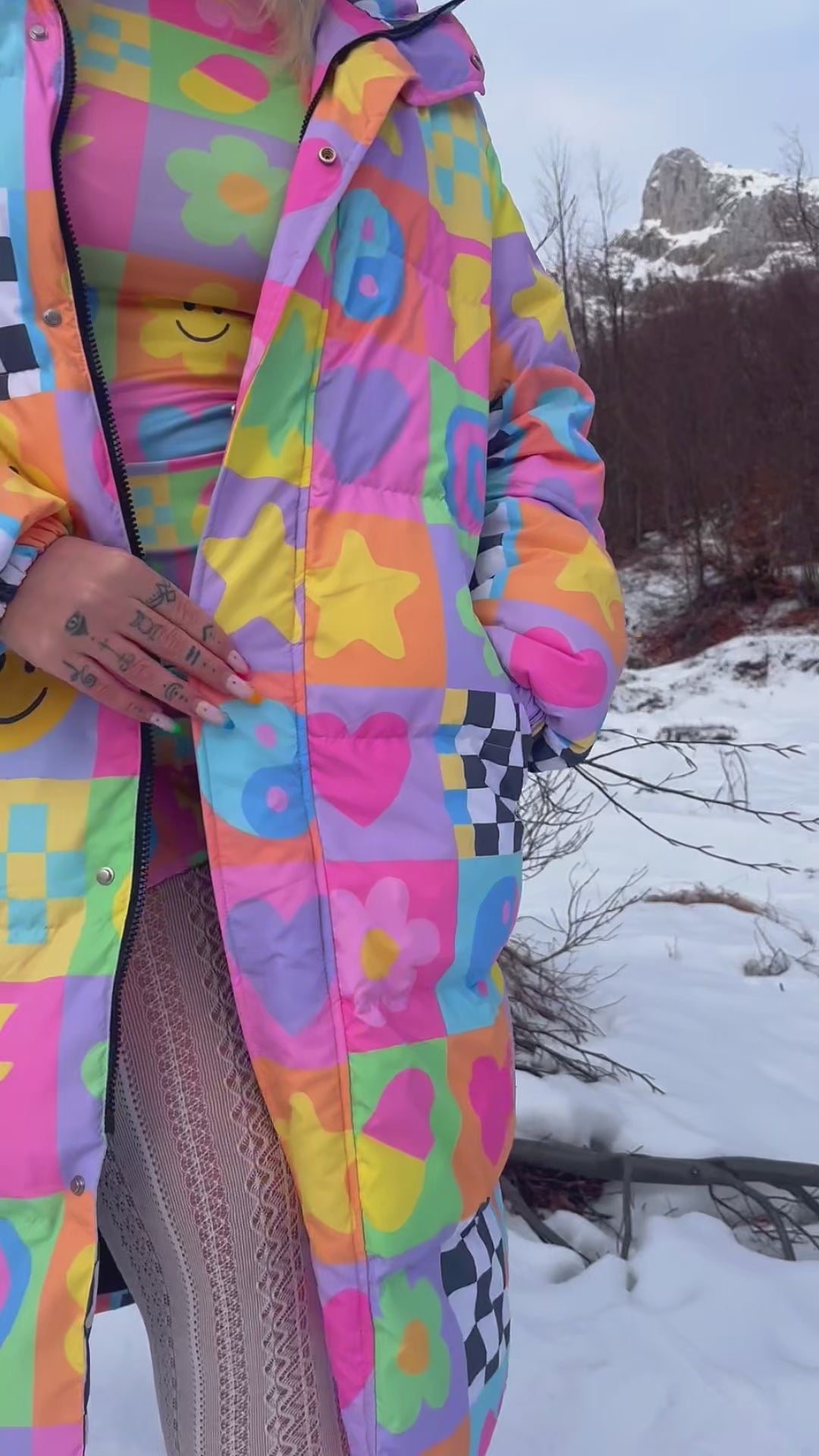 Its luxe long length silhouette is made for effortless layering, keeping you cozy while serving that signature Happy Pillz Club energy. Whether you’re wandering snowy streets or turning the slopes into your personal catwalk, this statement coat is ready to keep you snug and stunning all season long.