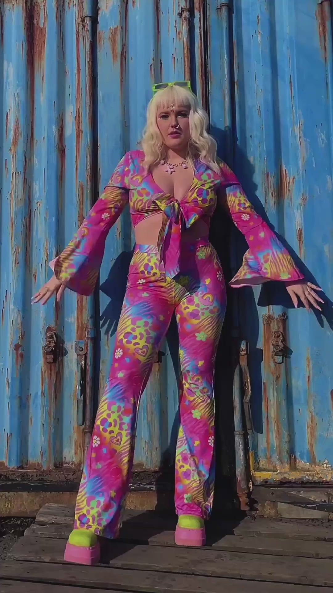Elevate your wardrobe with these stunning high-waisted bell bottom flares, crafted from premium quality soft touch stretchy spandex. Designed for ultimate comfort and style, these flares feature a bold and vibrant print that’s sure to turn heads. The high-stretch fabric provides a flattering fit and maximum comfort, making them perfect for all-day wear. Whether you're rocking them for everyday errands or showcasing your festival spirit at raves and events, these flares are effortlessly chic and versatile. Step out in style and embrace the perfect blend of comfort and flair with these must-have bell bottoms!